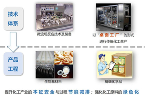 1)將超過百噸的反應裝置縮小至幾十升,以“桌面工廠”的實現傳統化工生產,大幅提升過程安全性,節約生產用地;